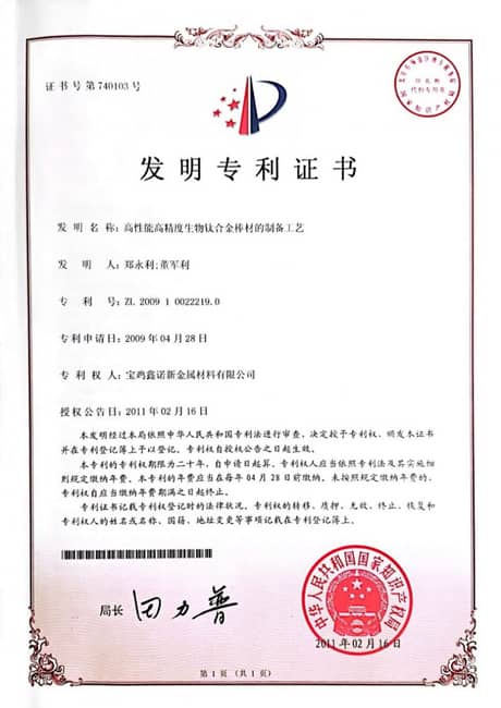 2014認(rèn)定為寶雞市企業(yè)技術(shù)中心,承接國家科技部高性能高精度醫(yī)用鈦棒材項目